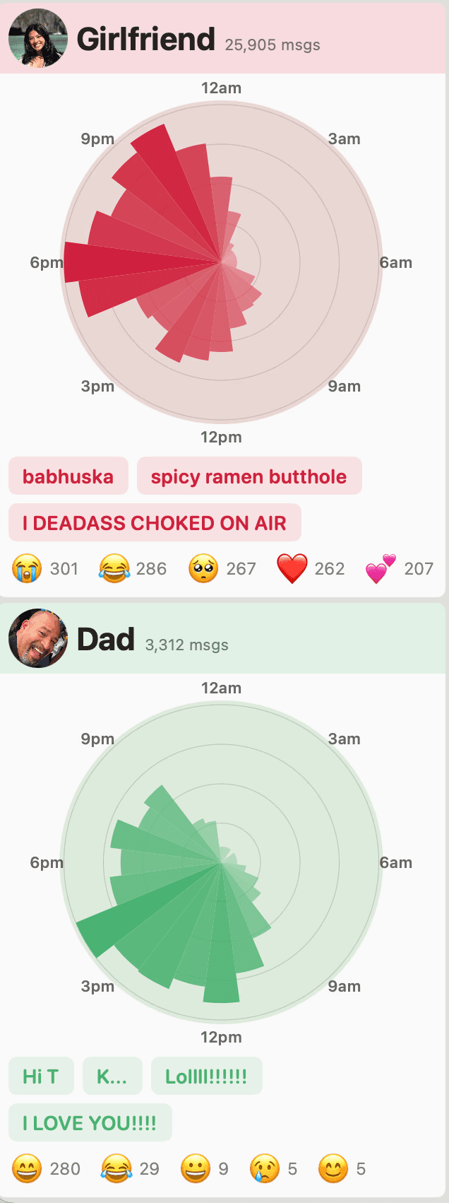 My best friend and I have 8 years of messages. Lore showed us our first dumb joke from 2017 and we were crying laughing. Absolute time capsule